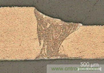 為了防腐蝕,大多數(shù)的熱成型材料都有鋁硅涂層。而在激光焊接過程中,鋁硅涂層將在焊縫中形成FeAl合金金相(如圖1所示),從而導(dǎo)致激光焊縫無(wú)法通過抗拉強(qiáng)度測(cè)試。因而,在激光焊接前必須去除鋁硅涂層。