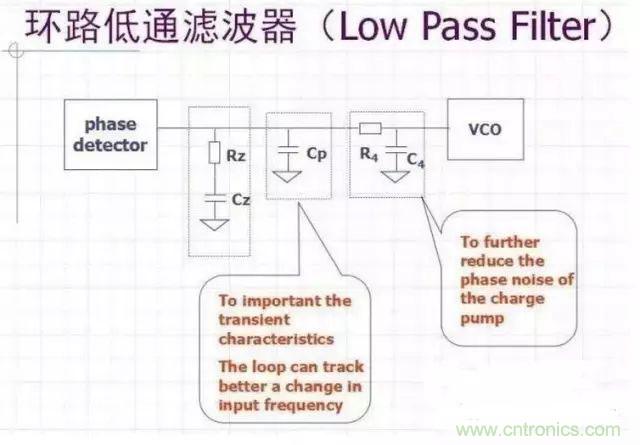 鎖相環(huán)路的性能鎖相環(huán)的基本性能包括捕獲過程與同步。(1)捕獲過程的性能指捕獲帶和捕獲時(shí)間。捕獲帶指環(huán)路能通過捕獲過程而進(jìn)入同步狀態(tài)所允許的最大固有頻差捕獲時(shí)間是環(huán)路由起始時(shí)刻到進(jìn)入同步狀態(tài)的時(shí)刻之間的時(shí)間間隔Frequency deviation capability 》》 the max. PLL capture range(2)環(huán)路鎖定之后穩(wěn)態(tài)頻差等于零,進(jìn)入同步狀態(tài)。穩(wěn)態(tài)相差通??偸谴嬖诘?,它是一個(gè)固定值。環(huán)路的跟蹤性能輸入信號變化越快,跟蹤性能就越差。暫態(tài)相位誤差和穩(wěn)態(tài)相位誤差的大小,是衡量環(huán)路線性跟蹤性能好壞的重要標(biāo)志。環(huán)路噪聲性能噪聲包括輸入噪聲與諧波干擾和內(nèi)部噪聲與諧波干擾,壓控振蕩器內(nèi)部的噪聲是主要的噪聲源。環(huán)路捕獲性能捕獲帶越寬越好,捕獲時(shí)間越短越好,可提高環(huán)路的增益K或者增加濾波器的帶寬,但加大環(huán)路增益或?yàn)V波器帶寬往往是與提高環(huán)路的跟蹤性能和濾波性能的要求相矛盾。采用輔助捕獲的方法達(dá)到目的。包括輔助鑒頻和鑒頻鑒相,變帶寬和變增益等。
