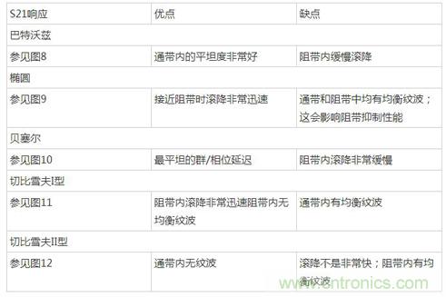 表1. 濾波器比較