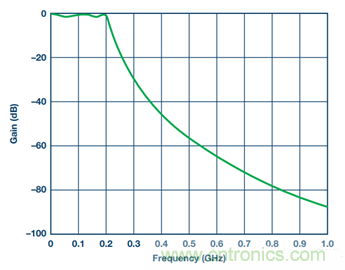通信接收鏈中的IF濾波器基本上是低通濾波器或帶通濾波器。它用于抑制混疊信號(hào)以及有源器件產(chǎn)生的雜散。這些雜散包括諧波和IMD產(chǎn)物等。利用該濾波器,接收鏈可提供高SNR的信號(hào)供ADC分析。