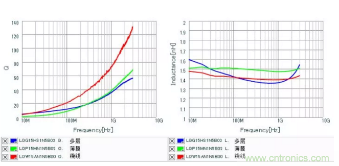 Murata有三種工藝的高頻電感,選擇了同感值(1.5nH)、同封裝、同容差的電感對比。