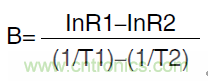 它被定義為兩個(gè)溫度下零功率電阻值的自然對(duì)數(shù)之差與這個(gè)溫度倒數(shù)之差的比值。