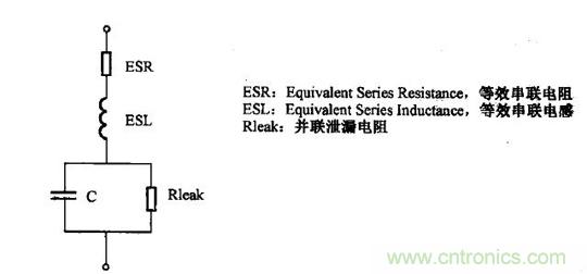 其中寄生電感有電容的引腳電感和電容器件兩級之間的等效電感串聯(lián)而成,主要取決于封裝。寄生電阻有電容的引腳電阻和電容器件兩級之間的等效電阻串聯(lián)而成,主要取決于電容的工作溫度、工作頻率、電容體本身的導(dǎo)線電阻等;而泄露電阻取決于電容本身的泄露特性。