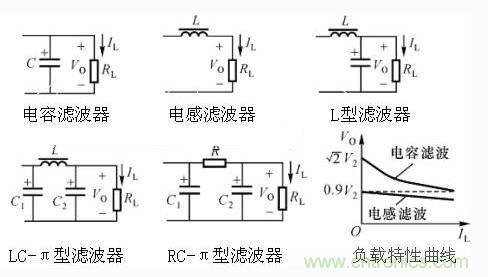 為確保二極管安全工作,要求:不同電子設(shè)備要求其電源電壓的平滑程度不同,為此可采用不同的濾波電路。常見的有電容濾波、電感濾波和復(fù)式濾波電路(兩個或兩個以上濾波元件組成)。