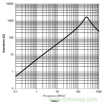 圖1:Wurth Electronics電感744029001在工作頻率時(shí)的阻抗特性表現(xiàn)