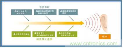 圖4:導致產(chǎn)生功率電感器嘯叫的振動原因以及擴大原因