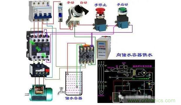 自動控制由傳感器和控制執(zhí)行機構(gòu)組成。液位控制器的傳感器一般是導(dǎo)線。利用水的導(dǎo)電性。水的導(dǎo)電性較差,不能直接驅(qū)動繼電器。所以要有電子線路將電流放大,以推動繼電器工作。繼電器就是執(zhí)行機構(gòu)。