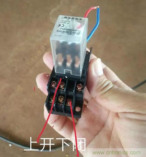 中間繼電器的每一組控制觸點(diǎn)分為公共端,常閉點(diǎn)和常開點(diǎn)。和線圈進(jìn)線端一個方向的是觸點(diǎn)公共端,出線端分常開和常閉。判斷常開和常閉的方法是把繼電器插上繼電器座,用萬用表的通斷檔分別測量公共端到兩個出線端的通斷,通的是常閉,不通的是常開。如果沒有萬用表,我這里有一個小經(jīng)驗(yàn)告訴大家,一般中間繼電器的觸點(diǎn)都是上開下閉,就是上面一排是常開點(diǎn),下面一排是常閉點(diǎn)。大家可以參考一下。后面有圖。