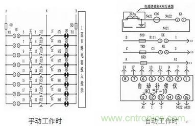 安裝接線按照先左后右、從上到下、由里到外、先難后易的接線原則進(jìn)行接線。先接線無(wú)功功率表、電流表、電壓表;然后接線自動(dòng)補(bǔ)償儀、萬(wàn)能轉(zhuǎn)換開(kāi)關(guān);完成以后進(jìn)行捆扎線保持橫平豎直轉(zhuǎn)角為90°。端子排接線要留出一段線,每只端子上接線螺釘最多接二根導(dǎo)線,對(duì)于端子間的連線可采用(圖五)的方法。然后接線電流互感器、交流接觸器、熱繼電器。