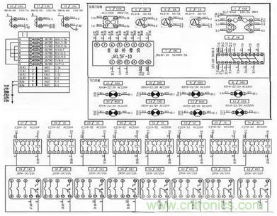 手動(dòng)工作時(shí),轉(zhuǎn)換開(kāi)關(guān)KK從kk21-22開(kāi)始每轉(zhuǎn)過(guò)一個(gè)位置多接通一個(gè)LED燈,表示1—8個(gè)電容器依次進(jìn)入使用狀態(tài);自動(dòng)接通時(shí),轉(zhuǎn)換開(kāi)關(guān)KK如在kk1-2位置停下,那么停下的位置,其余均接通。(如下圖)