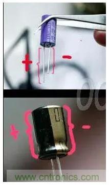 對(duì)于直插的有極性的電容來(lái)說(shuō),好分辨,長(zhǎng)腿為正,短腿為負(fù)。電解電容有黑色標(biāo)志的為負(fù),也對(duì)應(yīng)著短腿。