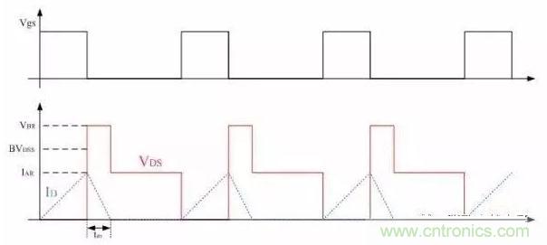 其中,VBR=1.3BVDSS, L為提供雪崩能量的電感