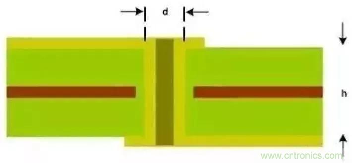 圖5:PCB橫截面用于估算寄生影響的過孔結構