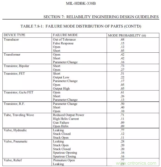 【導讀】以下總結摘錄MIL-HDBK-338B,美軍可靠性設計手冊來為FTA(故障樹)做一些支持。如果我們想要進行FTA的定量分析,一定要把可靠性預測先做完,在可靠性前一定要把電壓分布表和溫度分布先進行初步的運算,通過下面的的表格,大概可以預計失效發(fā)生的時候故障的分配比例。