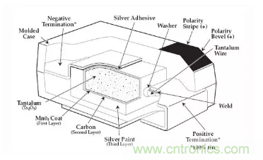 下面是鉭電容的內(nèi)部結(jié)構(gòu)示意圖:
