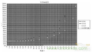 表2 17.5μm外層/35μm內(nèi)層銅箔的PCB上不同孔徑載流能力數(shù)據(jù)表