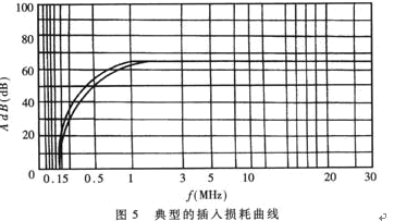 插入損耗用分貝(dB)表示,分貝值愈大,說(shuō)明抑制噪聲干擾的能力愈強(qiáng)。鑒于理論計(jì)算比較煩瑣且誤差較大,通常是由生產(chǎn)廠家進(jìn)行實(shí)際測(cè)量,根據(jù)噪聲頻譜逐點(diǎn)測(cè)出所對(duì)應(yīng)的插入損耗,然后繪出典型的插入損耗曲線,提供給用戶。