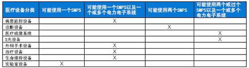 表2 電子醫(yī)療設(shè)備中SMPS和其他電力電子系統(tǒng)的使用