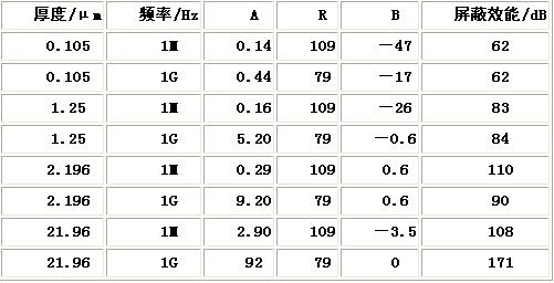 不同厚度的銅薄膜的屏蔽效能見表4。