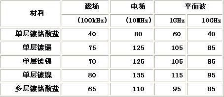 表2 各種金屬屏蔽材料的性能[page]