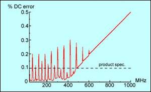 大多數(shù)模擬設備的抗擾度問題是由射頻解調引起的。運放每個管腳都對射頻干擾十分敏感,這與所使用的反饋線路無關(見圖3),所有半導體對射頻都有解調作用,但在模擬電路上的問題更嚴重。即使低速運放也能解調移動電話頻率及其以上頻率的信號,圖4表明了實際產(chǎn)品的測試結果。