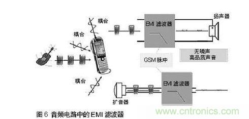 在音頻電路中如有電磁干擾(EMI),會出現(xiàn)嘶嘶、噼啪、嗡嗡等聲音,聲音質(zhì)量很差。手機用戶無法忍受這樣的干擾。因此,必須設(shè)法過濾音頻電路的電磁干擾。