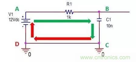 往往在設計階段A->B->C是都會關注的。如果EMC出現(xiàn)問題,除了要在原理圖上查找電路參數(shù)的問題,還需要特別關注C->D,即回流路徑。
