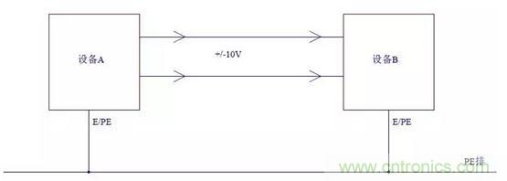 如下圖所示,如果兩個設(shè)備的零電位沒有很好的連接,即使設(shè)備A輸出的電壓信號是穩(wěn)定的,當設(shè)備B的輸入端接收到時也會變?yōu)椴环€(wěn)定的。