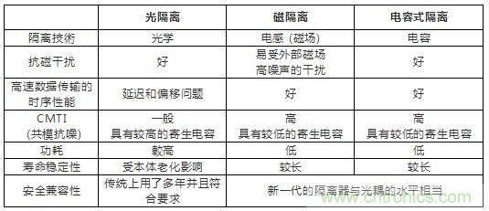 表1:三種主流隔離技術(shù)的比較