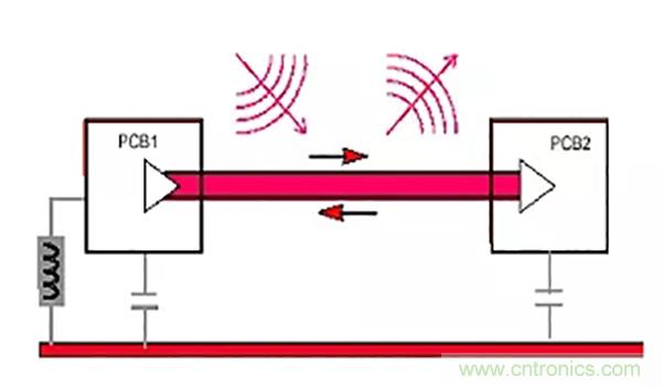 2、共模輻射:由于導(dǎo)體的電位高于參考電位產(chǎn)生