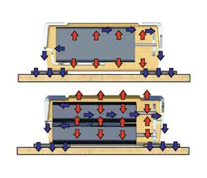 利用兩個(gè)陽(yáng)極橫向“鏡像”結(jié)構(gòu),研究人員已經(jīng)開(kāi)發(fā)出一種新型的多陽(yáng)極結(jié)構(gòu)。鏡像結(jié)構(gòu)使用改良的引線框形狀,引線框定位于兩陽(yáng)極中間。這種結(jié)構(gòu)解決了電極橫向排列的連接問(wèn)題,并使工藝改裝費(fèi)用下降到了可接受的水平。
