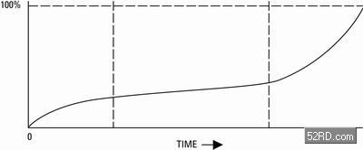第1個(gè)區(qū)段描述了裝置的失敗率。只要在生產(chǎn)裝置中進(jìn)行若干測(cè)試,就可以把故障率降低到一個(gè)在實(shí)際運(yùn)行中可以接受的水平。第2個(gè)區(qū)段描述了實(shí)際工作壽命中有可能出現(xiàn)的隨機(jī)故障。它們與時(shí)間無關(guān),有關(guān)裝置也不會(huì)預(yù)先替換,一般都會(huì)在發(fā)生故障時(shí)才會(huì)被替換。第3個(gè)區(qū)段顯示了裝置的壽命接近終結(jié)而開始出現(xiàn)損耗。假如不加以替換,有一半產(chǎn)品都會(huì)在壽命中期開始失效。