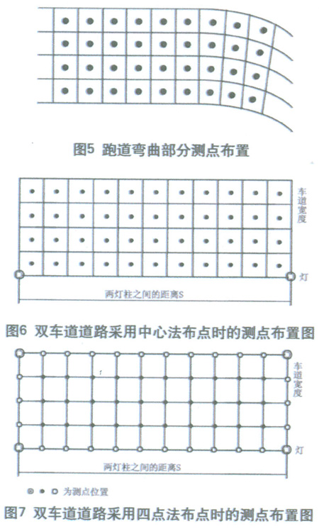 照度測量的范圍,在縱方向(沿道路走向)應(yīng)包括同一側(cè)的兩個燈桿之間的區(qū)域;而在橫方向,單側(cè)布燈時(shí)應(yīng)為整個路寬;雙側(cè)交錯布燈、對稱布燈或中心布燈時(shí)可為1/2路寬。