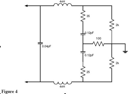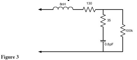 查看Figure 1中的等效電路,可以看到諧振頻率(1/(2*PI*sqrt(LC))給出)點(diǎn)的探頭輸入阻抗是0歐姆——完全消除了被測信號!最近一些制造商開始注意這個(gè)問題并設(shè)計(jì)具有更好輸入特性的探頭。Figure 3展示了這種探頭(Probe A)的等效電路。這是許多給出這個(gè)探頭精確依賴于尖端和地夾的等效負(fù)載模型之一。這個(gè)探頭還有一個(gè)諧振點(diǎn)大概是2GHz,該頻點(diǎn)的阻抗被電阻限制到大約165歐姆。