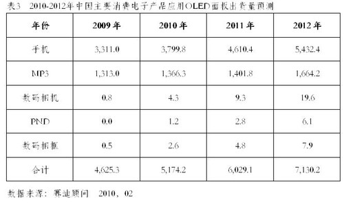 2010年4月13日,中國(guó)權(quán)威ICT研究與管理咨詢機(jī)構(gòu)賽迪顧問股份有限公司在“2010中國(guó)消費(fèi)電子市場(chǎng)年會(huì)”上發(fā)布《2009-2010年中國(guó)OLED產(chǎn)業(yè)發(fā)展研究年度報(bào)告》顯示:隨著手機(jī)和MP3/MP4等應(yīng)用產(chǎn)品需求的推動(dòng),OLED顯示屏市場(chǎng)自2003年開始快速成長(zhǎng),到2009年,全球OLED出貨量達(dá)到8780萬片,由于受到全球終端產(chǎn)品有所減緩的影響,特別是手機(jī)和MP3市場(chǎng)出貨量的下滑,加上PMOLED全球產(chǎn)量明顯降低,但AMOLED在得到面板廠商大力推動(dòng)下,特別是像諾基亞、三星、索愛等終端廠商,均在2009年推出一系列采用AMOLED屏幕的手機(jī),在應(yīng)用市場(chǎng)的推動(dòng)下,AMOLED有了較大的增長(zhǎng),不過OLED總體仍有所下滑。伴隨著AMOLED出貨量的增長(zhǎng)和市場(chǎng)比例的提升,OLED整體產(chǎn)值有明顯的增長(zhǎng),2009年產(chǎn)值達(dá)到9.05億美元,較2008年成長(zhǎng)31.2%,出貨量在下滑的同時(shí),而出貨額保持增長(zhǎng),AMOLED貢獻(xiàn)極為明顯。
