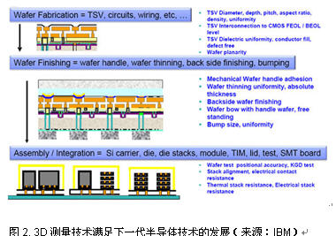 另一個(gè)比較熱門的領(lǐng)域就是3D集成和硅通孔技術(shù)(TSV),它們將為芯片帶來更小的尺寸、更低的能耗以及更強(qiáng)大的功能性,是半導(dǎo)體技術(shù)下一步發(fā)展的契機(jī)(圖2)。