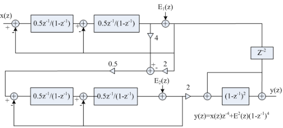 圖1:Casecode結(jié)構(gòu)四階Σ-Δ調(diào)制器Z域模型。