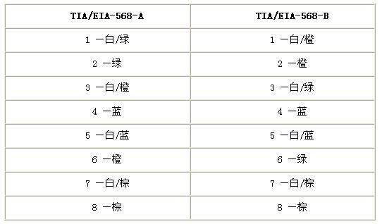 線序排列的標(biāo)準(zhǔn)有兩個(gè),即TIA/EIA-568-A標(biāo)準(zhǔn)和TIA/EIA-568-B標(biāo)準(zhǔn)。