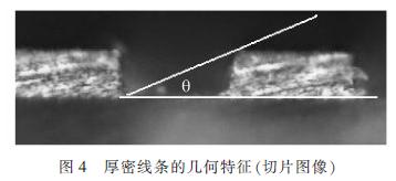 從圖4可以看到,線條高度/線距比例已接近1/2。即,則角度為27°。當(dāng)使用厚密板作為線路檢查的對象時(shí),所需的光源光線入射角度比普通光源所能提供的光線角度大得多。要想得到清晰且對比度良好的圖像,必須提高光源的角度到某個(gè)合適的值,同時(shí)綜合考慮基材和線路的光學(xué)特性。