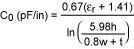 為評(píng)估引線長(zhǎng)度的影響,確定引線寄生參數(shù)對(duì)理想電路的去諧效應(yīng)更實(shí)用。本例中,我們討論雜散電容和電感。用于微帶線的特征電容標(biāo)準(zhǔn)方程為: