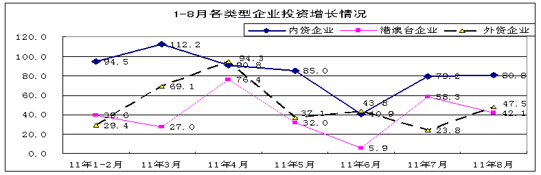 - 內(nèi)資企業(yè)仍是拉動投資的主體,港澳臺資和外資企業(yè)投資增長放緩