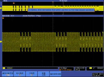 下面我們以一個13.56MHz的RFID讀寫器系統(tǒng)為例,介紹MDO4000的跨域調(diào)試應用。