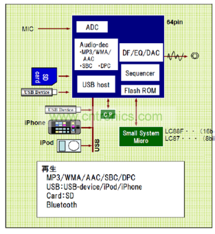 安森美半導(dǎo)體新開發(fā)的DSP無機(jī)芯方案包含各種音頻格式編解碼,可以支持多種外接設(shè)備如USB、iPad、iPhone、SD卡和藍(lán)牙等。內(nèi)部算法還包括了音效處理功能;另外,還預(yù)留了CD-DSP接口,將CD機(jī)芯作為可選配置,實(shí)現(xiàn)平臺化設(shè)計(jì),目前已有相應(yīng)產(chǎn)品推出。圖6是安森美半導(dǎo)體的無機(jī)芯DSP方案。