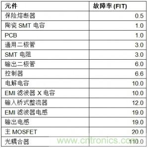 表2顯示出更多的元件會導(dǎo)致更高的故障率,而增加一個電解電容會降低可靠性。