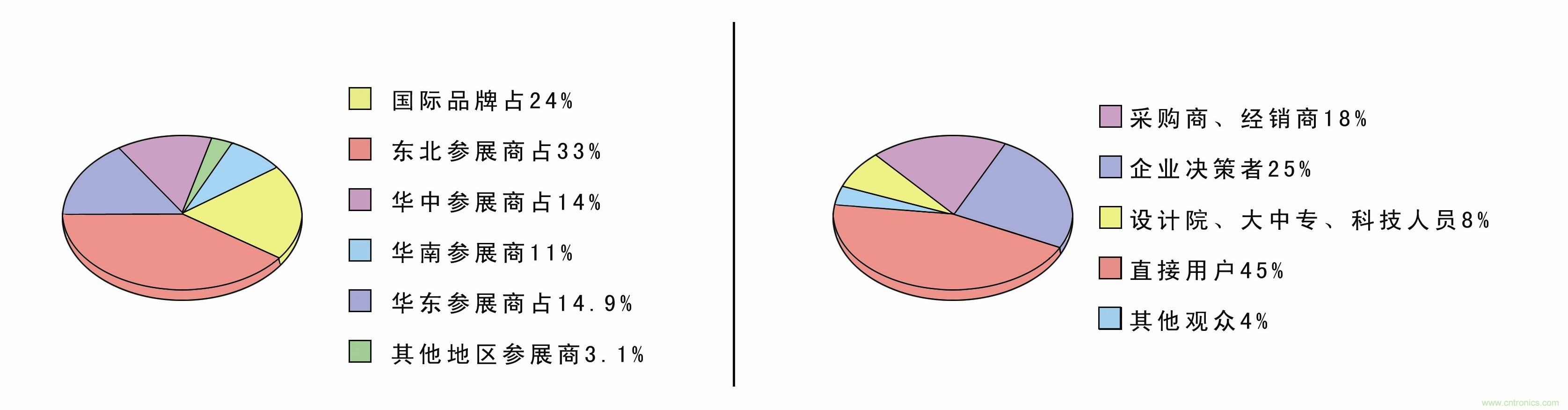 上屆展會于2012年5月16-18日在大連星海會展中心舉行,展會規(guī)模已達(dá)一萬多平方米,四百多個(gè)展位。世界知名的廠商:西門子、ABB、施耐德、三菱電機(jī)、奧托尼克斯、歐姆龍、LG、艾默生、寶帝、威圖、米思米、町洋機(jī)電、匯川等企業(yè)齊聚一堂,美國、日本、韓國等國外展團(tuán)的大量參與,使展會更具吸引力;展會的觀眾主要來自東北、華北、華東、華中、西北、臺灣、香港及日本、韓國、俄羅斯等地,其主要為相關(guān)行業(yè)的決策人士、技術(shù)人員及采購負(fù)責(zé)人。本屆展會為切合您的需求,直接面向?qū)I(yè)買家、進(jìn)出口商、分銷商、代理商和直接用戶,為您締造更多的商機(jī)!此次展會有參展商三百多家,參觀商兩萬余人,其中各占比例如下: