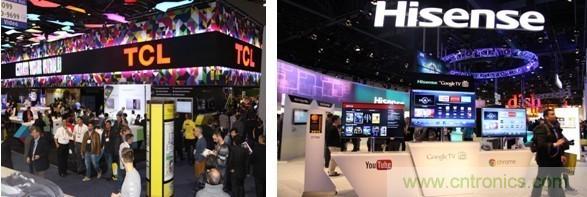 (圖為美國CES展會現(xiàn)場的中國企業(yè)TCL、海信展位)