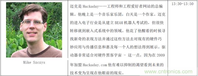 本次創(chuàng)客論壇三天共三個主題:啟蒙創(chuàng)新、創(chuàng)客本質和協(xié)同合作,將邀請到包括暢銷書《失控》作者Kevin Kelly、克萊舍基、Arduino開源電子原型開發(fā)平臺聯(lián)合創(chuàng)始人Massimo Banzi、第一個生物創(chuàng)客空間BioCurious聯(lián)合創(chuàng)始人Tito Jankonski、F.laobo的制作人和ArduinoFio的設計者Shigeru Kobayashi、Intel最小的實習生Joey Hudy和為麻省理工研究生授課的14歲電子神童QuinEtnyre等等共50余位來自全世界各地的創(chuàng)新領域領軍人物。