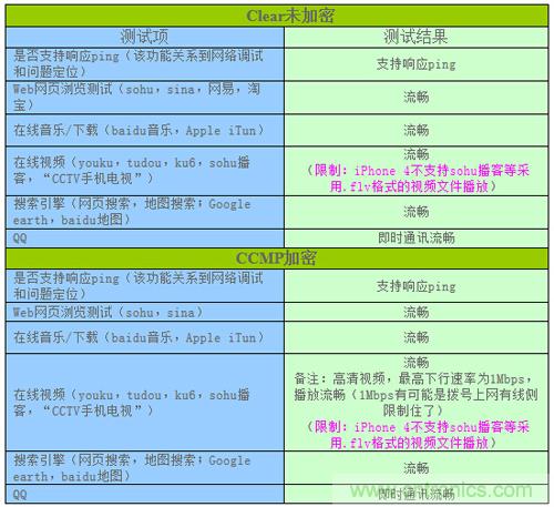 從測試結(jié)果可以看出:除了WEP128,iPhone 4對各種加密方式均能很好的支持,在采用混合加密的H3C WLAN網(wǎng)絡(luò)中也能很好的相互適配。