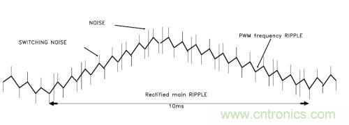 --工頻噪聲(Recfified main RIPPLE),一般是交流供電頻率的兩倍。我國(guó)供電頻率是50Hz,所以它的紋波主要來(lái)自工頻50Hz變壓器。大小取決于整流電路的類(lèi)型。對(duì)于半波整流,50Hz;對(duì)于全波整流,是100Hz;對(duì)于三相全波整流,300Hz。