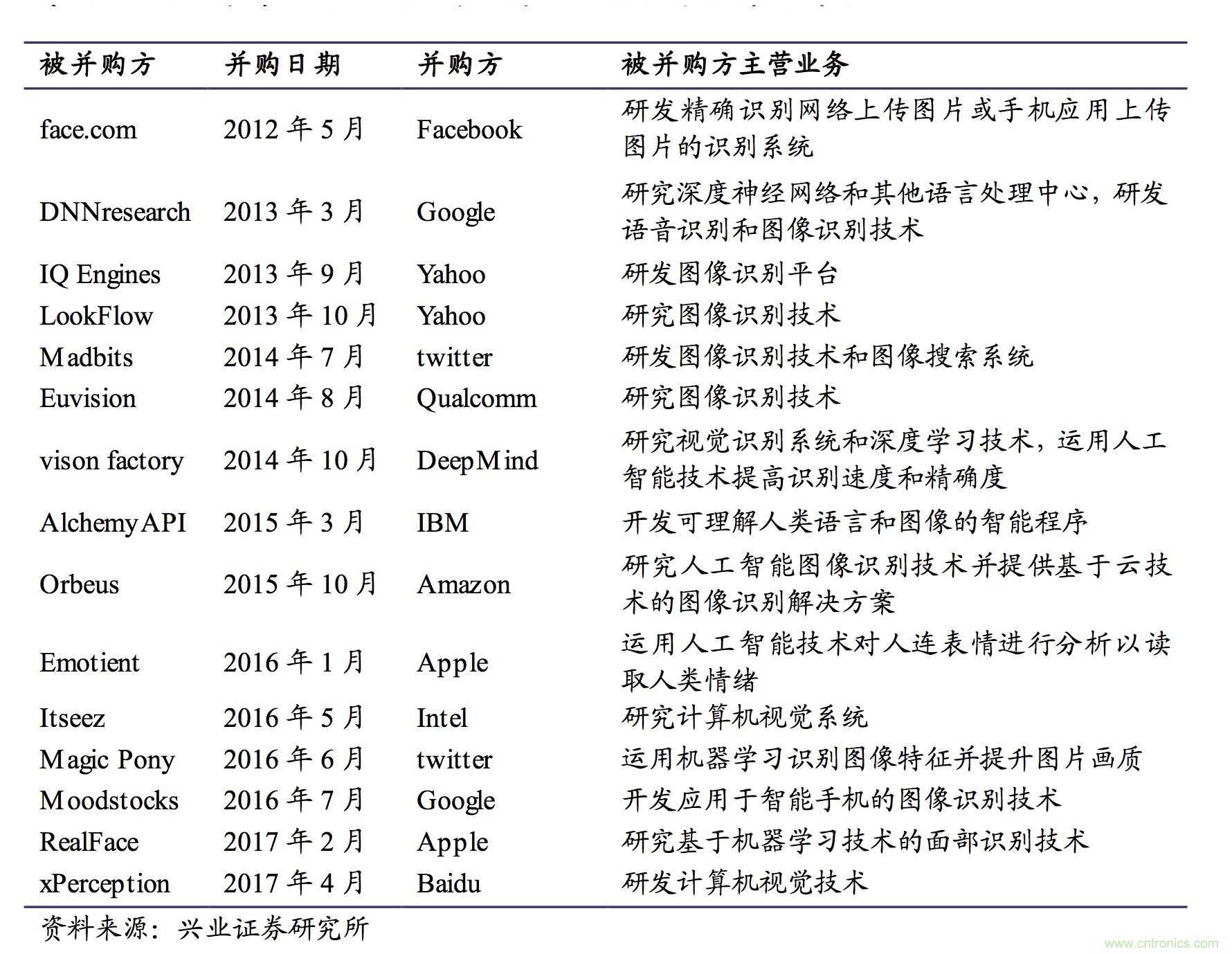近幾年在人臉識別領域及其上下游發(fā)生的外延并購
